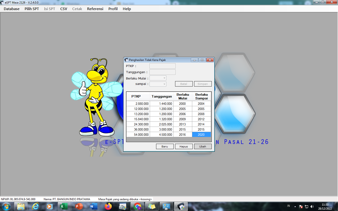 - Ubah masa berlaku PTKP paling bawah menjadi tahun 2030.